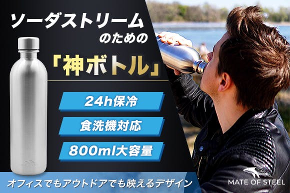 *免責事項: MATE OF STEELは、様々なSodaStream機器に適した高品質のステンレスボトルを製造する独立したブランドです。MATE OF STEELや(株)GEEK TRADEはSodaStream International Ltd.やその商標である "SodaStream "とは提携していません。