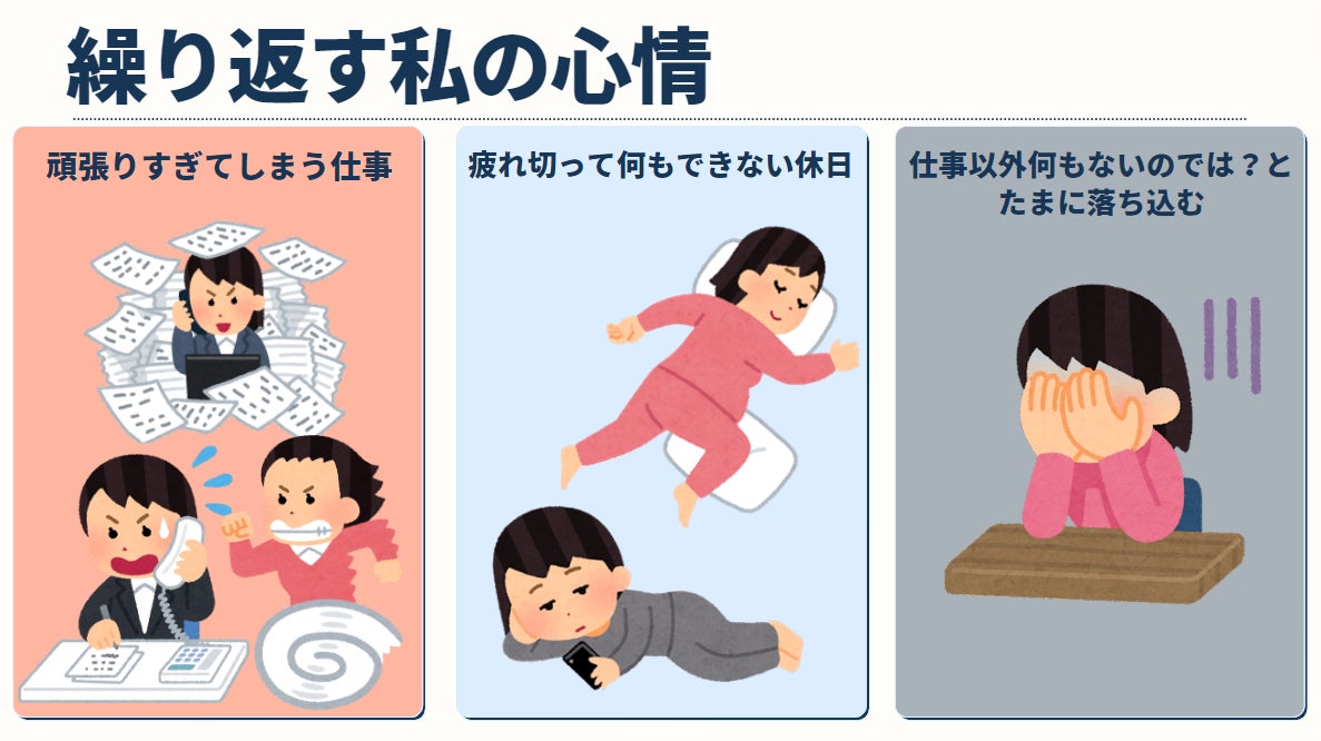 休日は疲れ切って寝てしまい、私から仕事をとったら何が残るんだろうと思うことがありました。