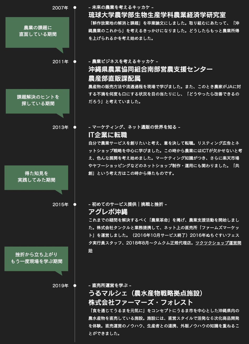 私は、これまでしたこと、これからやりたいこと、こんなサービスがあったらもっと良くなることをまとめ始めました。それは、共に共感してくれる仲間が側にいたからでした。彼らと、もう一度、この夢を実現させるためにトライしたい。そして、沖縄農業革命の方法論を導き出しました。