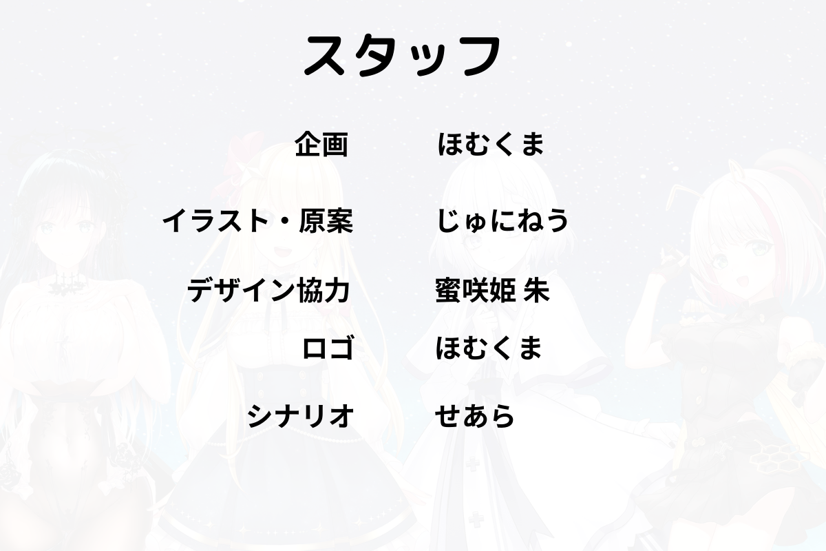 ゲームの最後にあなたのお名前を掲載します。エンドロールに掲載されたらあなたも制作者メンバーの1人です!