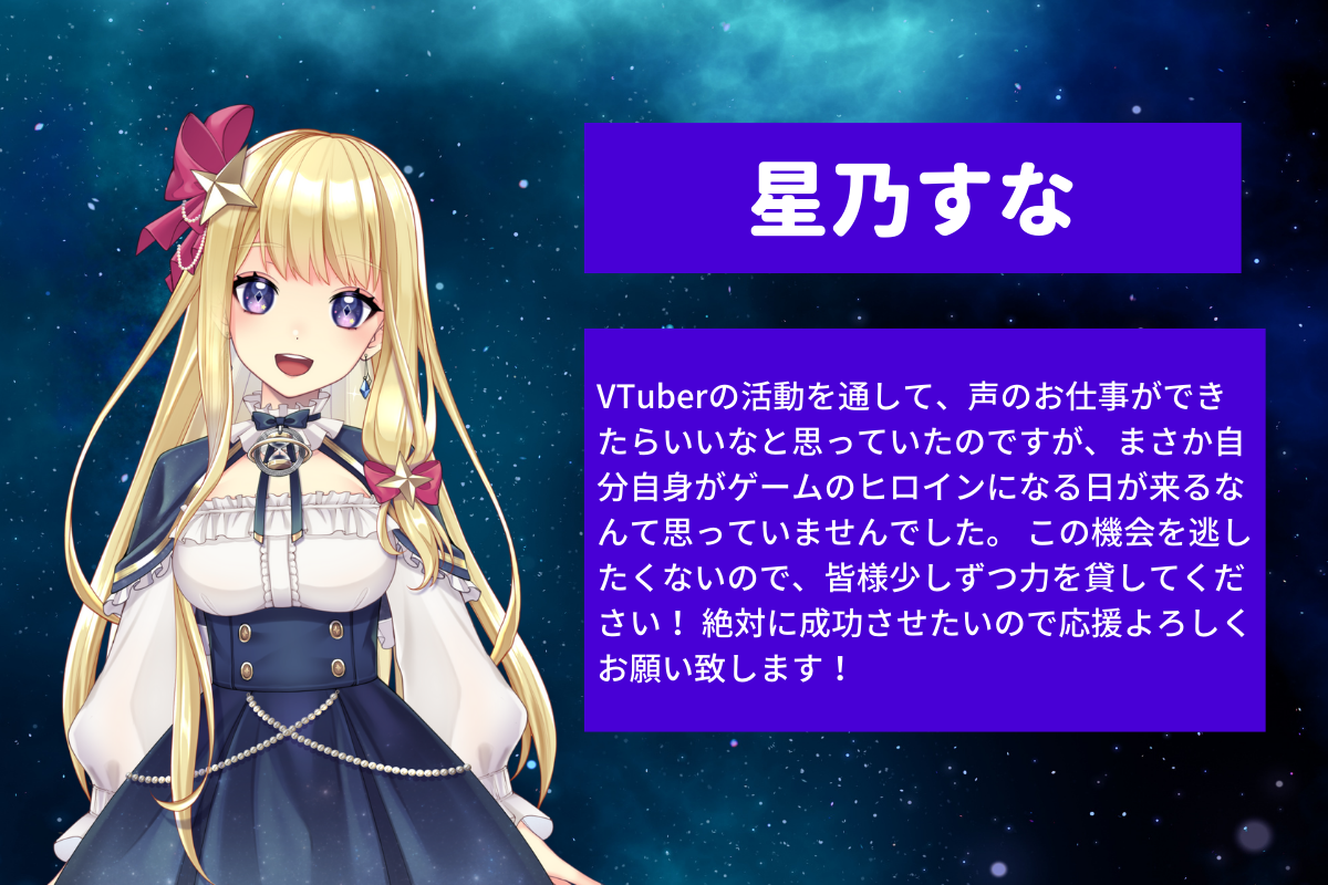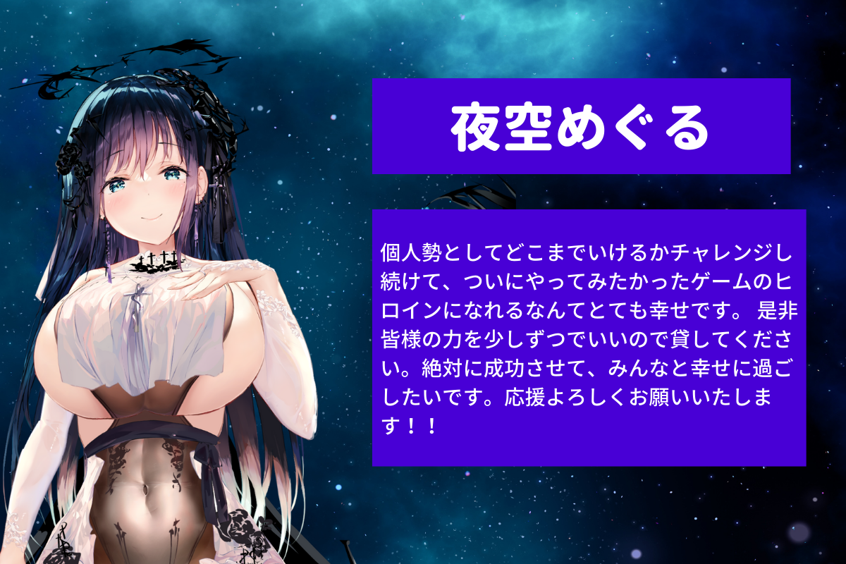 現在は、メインヒロインの4名(星乃すな、聖々良しきの、夜空めぐる、蜜咲姫 朱)のみ攻略ルートがあります。しかし、ストレッチゴールご支援額170%超え(170万)でエキストラ攻略ルートを制作します!