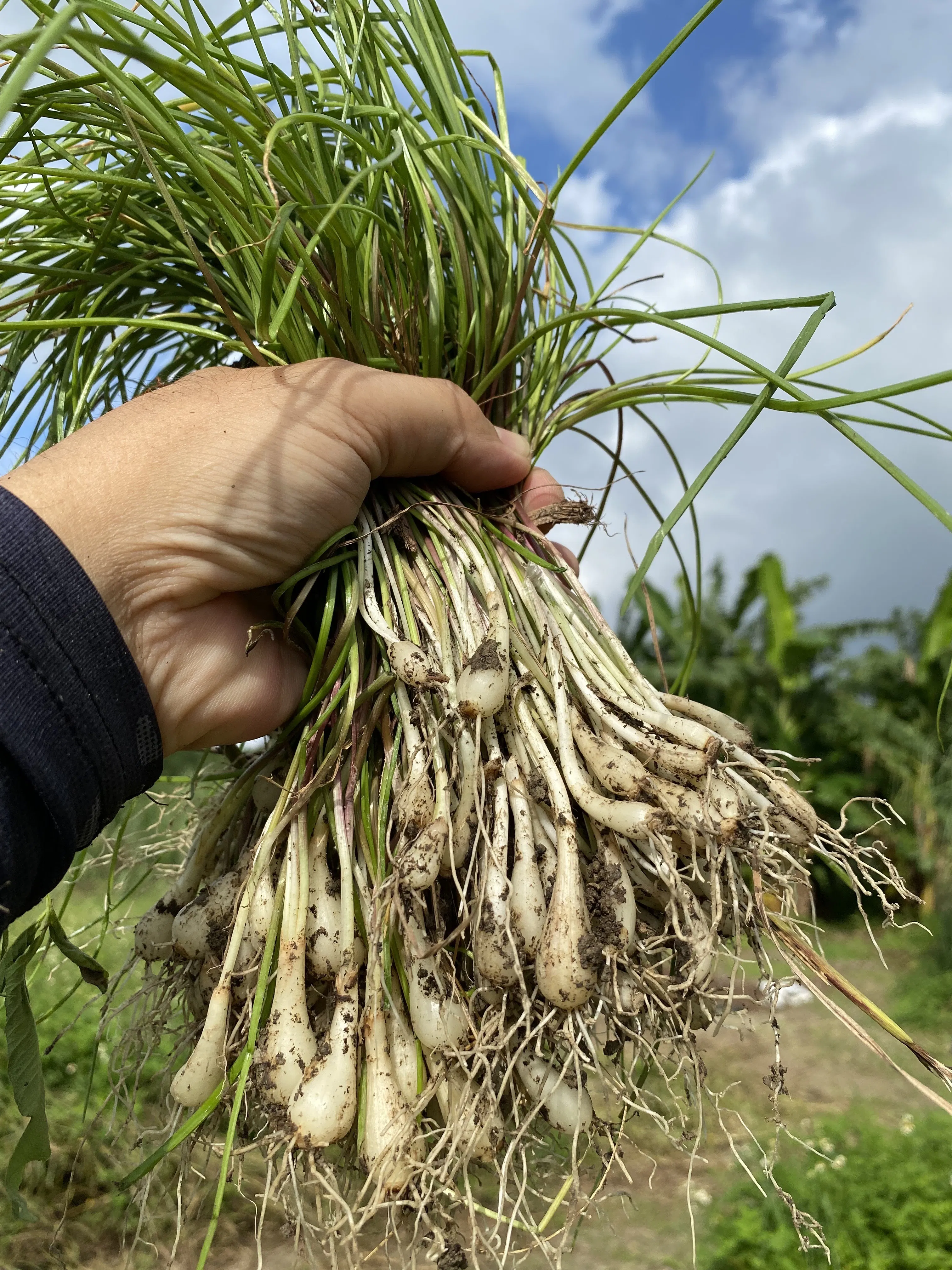 農業参入を模索し始めていた今から10年前宮古島で暮らす母の元をたずね相談したところ、「島らっきょうを作って欲しい」という母の想いを聴き、母が守り繋いできた島らっきょうをたくさんの人々に食べてほしいとの思いから島らっきょう作りに取り組む決意をしまし た。