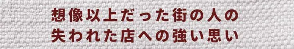 そんな消えゆく名店の味は、みなさんの思い出の中にだけ残り、さらに時が経つと、その思い出すらも街から消えて無くなってしまいます。
