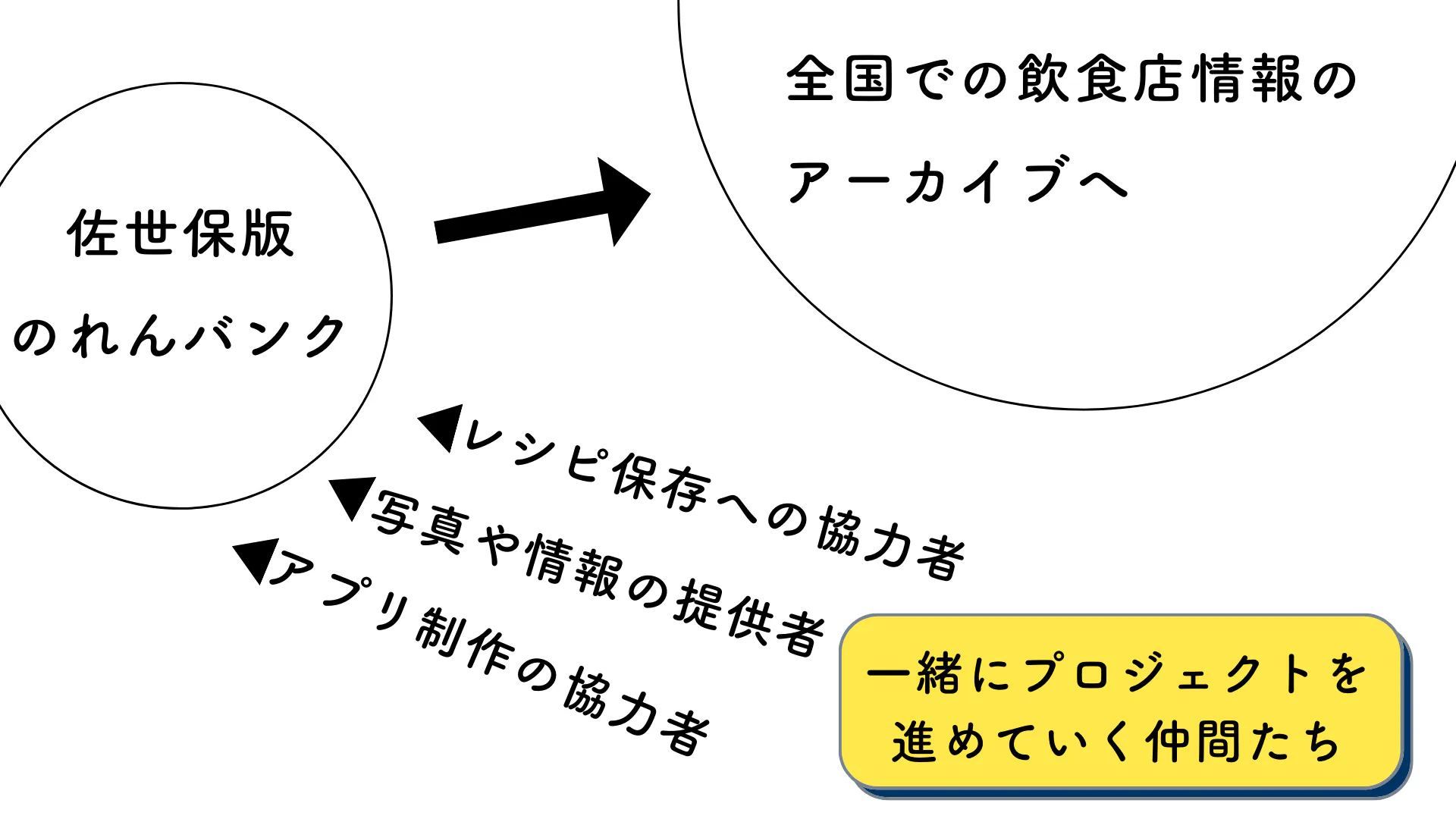 このプロジェクトは、佐世保から始まっていますが、日々、思い出の味が失われているのは、日本中どこの街でも共通した現象です。そのため、佐世保でのスタートと同時に、他地域でも一緒に「のれんバンク」プロジェクトに参加し、全国でのムーブメントとして、味の記憶のアーカイブを同時に進めてくれる、仲間を募集しています。