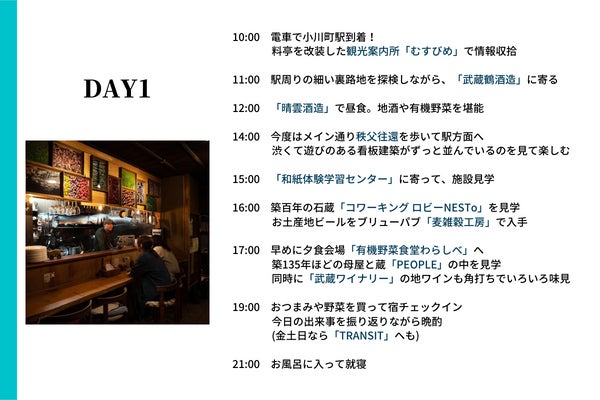 せっかく小川町にきてくださるなら、その日できたてほやほやの小川町の面白さに触れてもらえたらな。事前に持っていたイメージを超える思い出をつくっていただけたらな。まちのあちこちで宿泊者と地元の方との接点が生まれたらな。