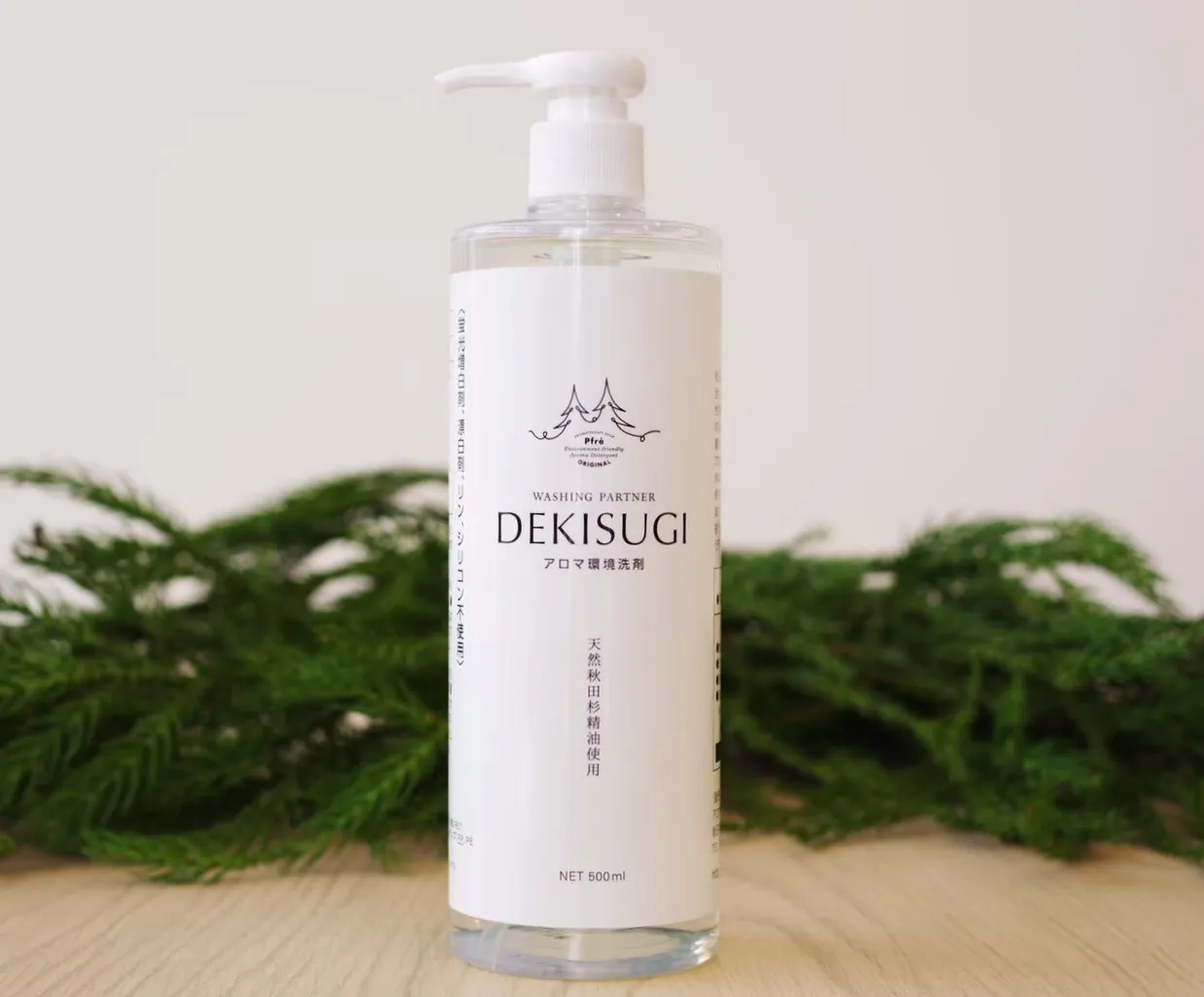 もう一つは、「アロマ環境洗剤DEKISUGI」です。秋田杉精油を使った多目的洗剤で、掃除も食器洗いも洗濯も洗車も家じゅうこれ1本で済む希釈タイプの液体洗剤です。界面活性剤の量は業界最少レベルで、手肌にも地球にも優しい。何と言っても、一番の特徴はアロマの効果で家事のストレスを軽減するというものです。油脂を細かく分解するので排水はサラサラ、排水管の汚れも分解してつまりやにおいも防ぐ優れものなのです。優秀過ぎるので「デキスギ」と名付けました。こちらもおかげさまでファンがついて下さっている商品です。