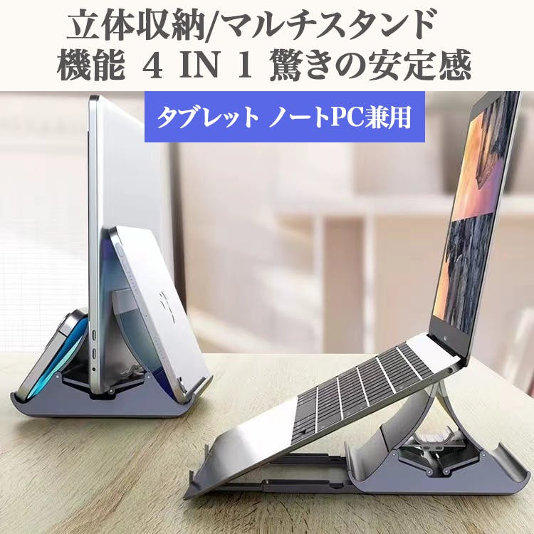 作業効率を向上させるPCスタンドでありながら、デスク周りもすっきりさせることができる、4in1のスマートなマルチスタンドです。