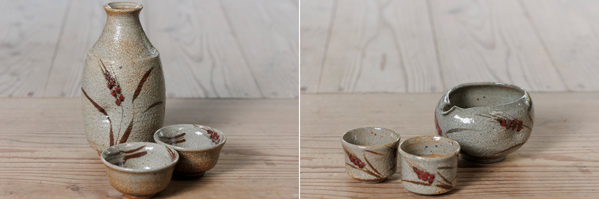 徳利に描いた麦の模様は、秋の季節を待たずに収穫の時期を迎えることから「他に先んずる」として、縁起のいい吉祥模様。また、佐賀県は麦の産地でもあります。