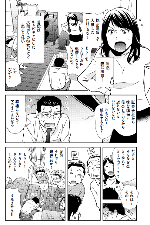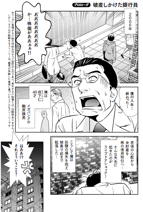 私は次のマンガのように、FXと株の信用取引で数千万円も大損し、莫大な借金を抱えて破産寸前にまで陥った銀行員だったのです。