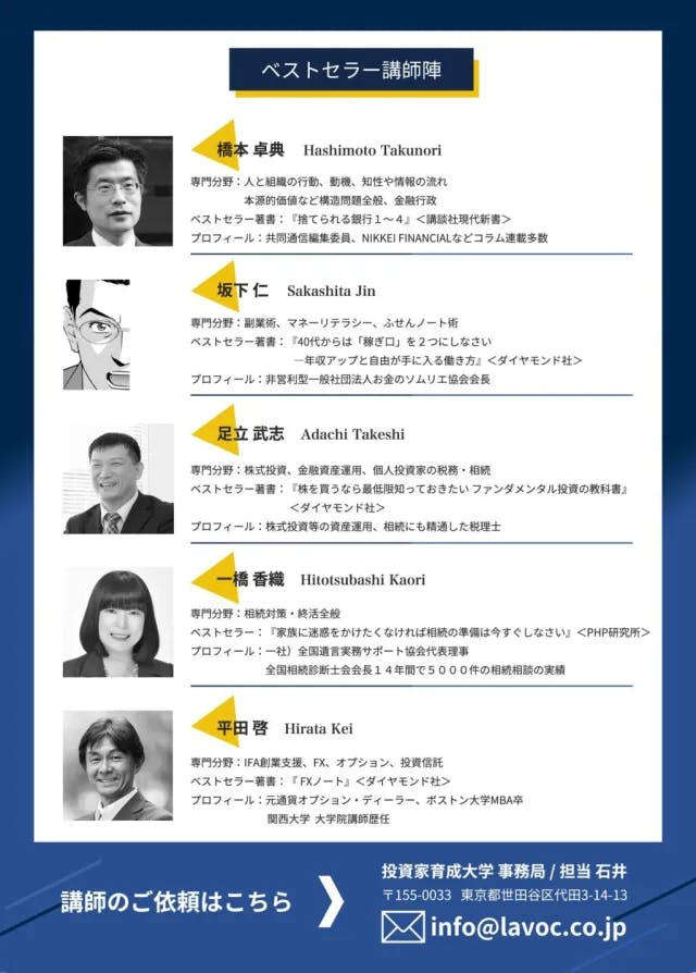 得意分野が異なるベストセラー仲間が集結し、投資家育成大学を創設する活動を始めています。