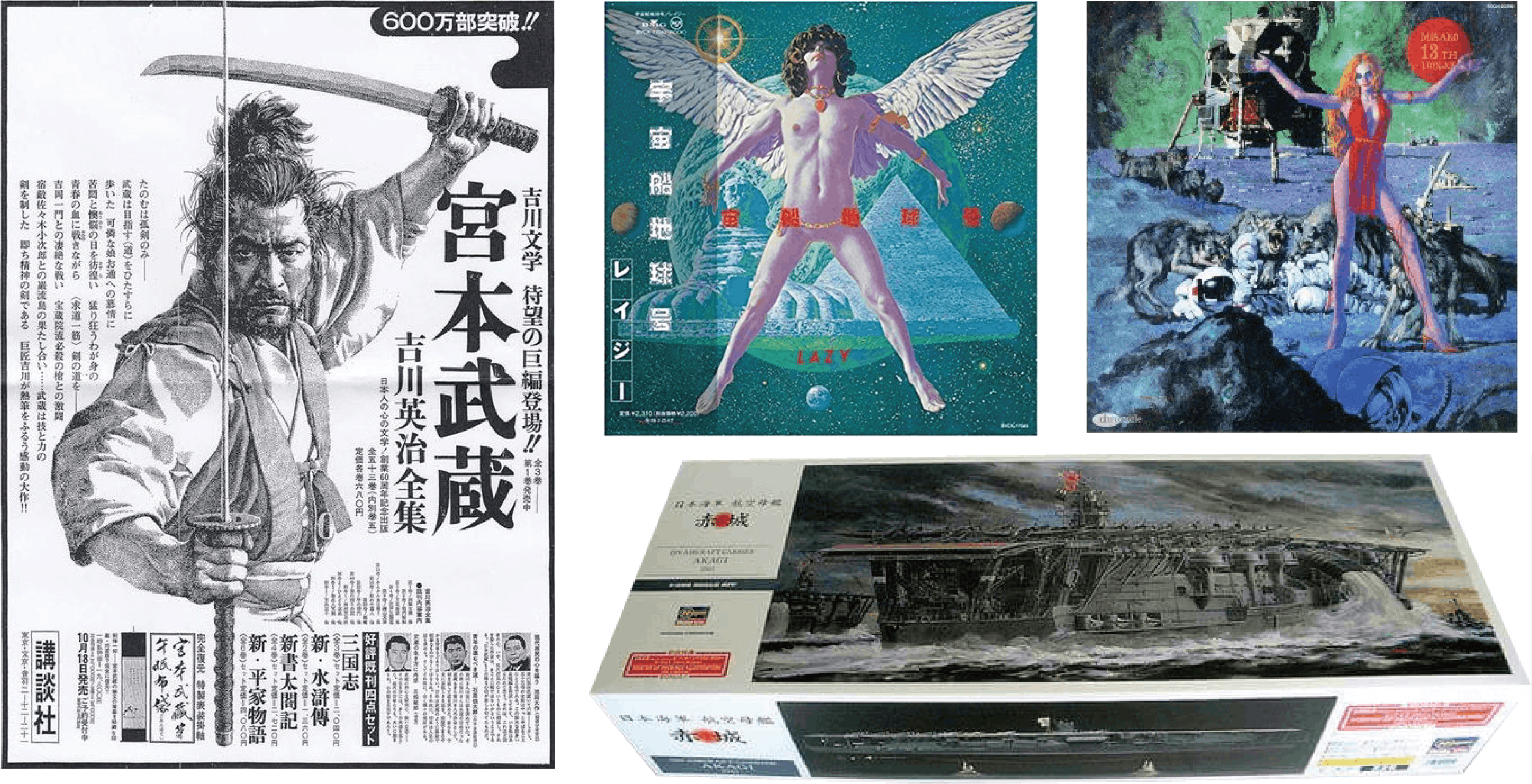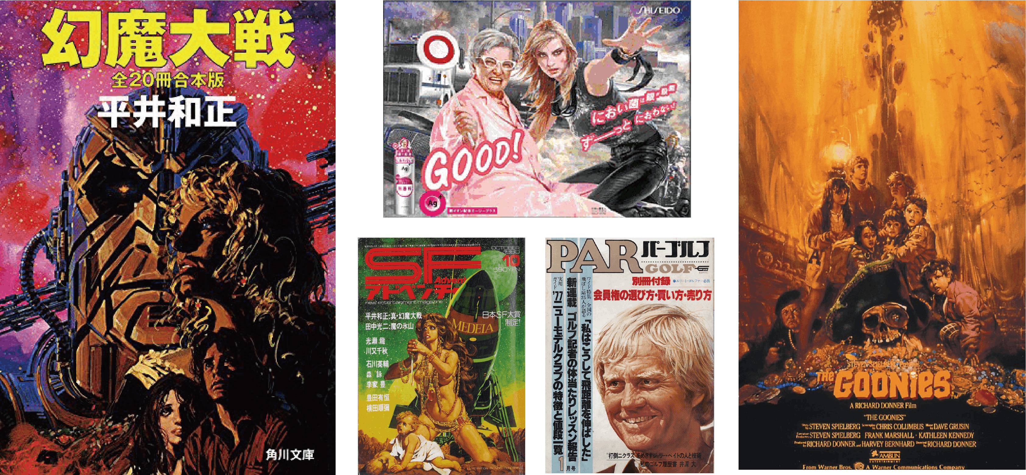 更に、映画「グーニーズ」「マッドマックス」「キングコング」「ゴジラ」、吉川英治の小説、雑誌「ムー」プラモデルメーカー「HASEGAWA/赤城」など、まだまだ沢山有り過ぎて、枚挙にいとまがないです。