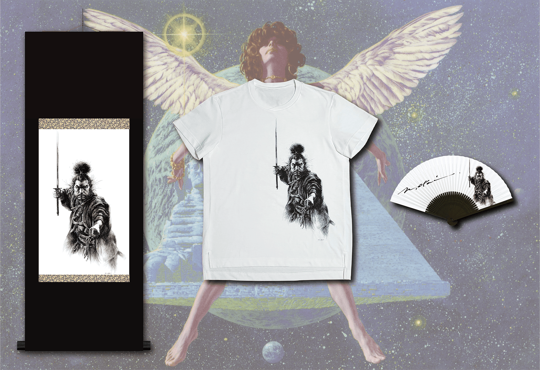 クライアントの依頼によって描き出されたイラスト。その一コマだけを切り取り、商品にするのではなく、一つ一つ理解をし、新たなモノに命を吹き込んでいく。稀代のイラストレーターの迫力を損ねる事無く伝えていく。『絵』だけではなく、仕事に向かう職人魂も出来る限り読み取り『モノ・コト』創りをする。それが私の挑戦です。