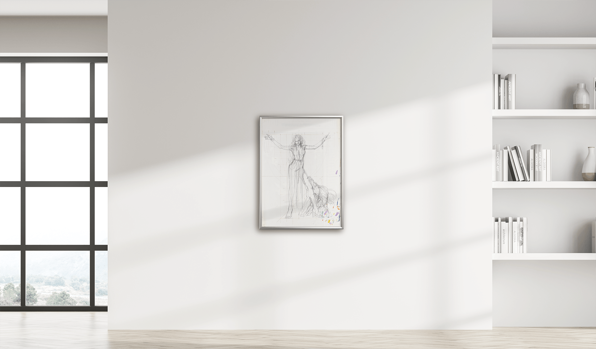 小刀で削った鉛筆で描いたであろうラフスケッチ。大きさはなんと約B2サイズ(原画720mm×515mm)最終的にはLPアルバムジャケットとなる。アトリエに眠っていた貴重な一枚のラフスケッチ。