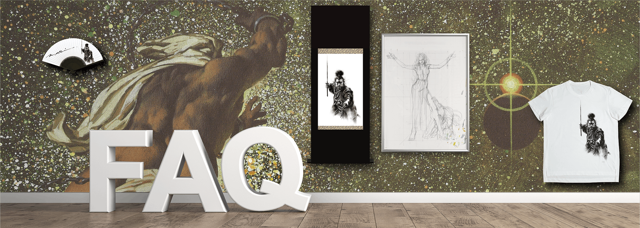 A:現状、見る事が出来るのは『掛け軸』のみとなっております。『掛け軸』は『渋谷パルコ/BOOSTER STUDIO by CAMPFIRE 』で展示する予定です。他の製品につきましては進捗がございましたら、こちらのプロジェクトページにて、お知らせいたします。