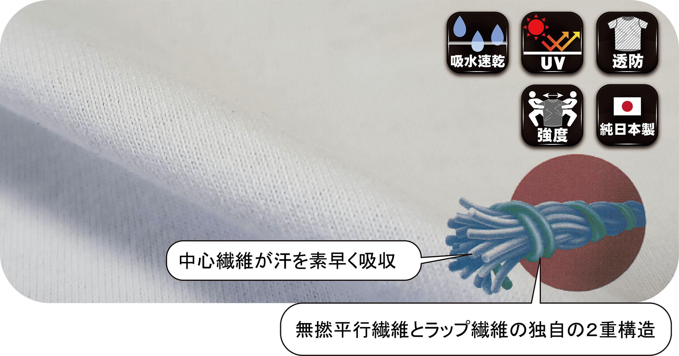 匠 素材:糸1本にこだわった吸水・速乾の100%コットン素材