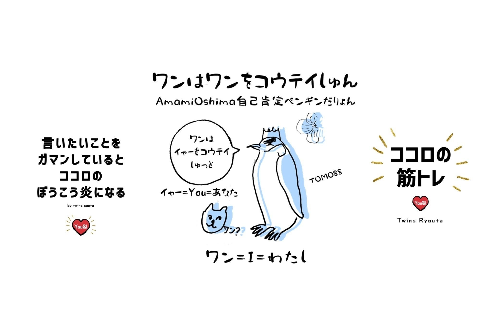 母(Tomomi)は、終わりの見えない介護生活に疲れていたころ、道端の野草に胸がときめき、『私に力を下さい。』とお願いしました。それから、奄美の野草のリース作りにハマり、2020年、奄美で開催されたminne のハンドメイド賞で、ミンネ賞を受賞し、介護を理由にやりたいことを諦めないで、やりたいことは、全部やってみよう!と意識を変え、声楽を習い始めました。幼少期に音痴だといわれ、歌を歌うことがトラウマになっていたからです。奄美大島古仁屋油井の展望台で、友人達の前でも、大声で歌うことができ、スッキリして活力が湧きました。ユーモアのセンスも戻り、自己肯定ペンギンのイラストも誕生しました。作家活動名は、TOMO88。