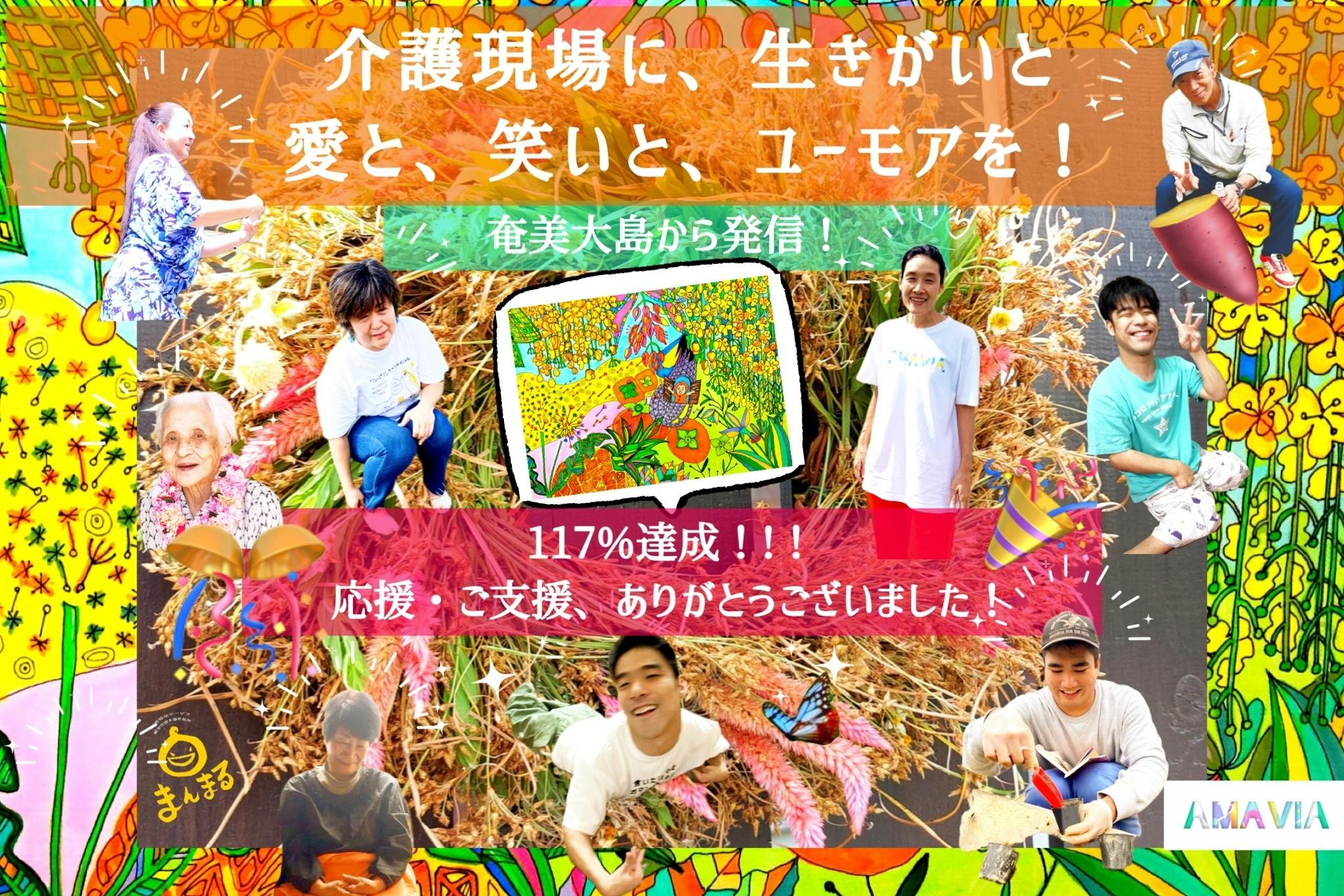2022/09/30 16:11今回のクラファン「介護現場に、イキガイと愛と笑いとユーモアを!」に応援・ご支援頂き、ありがとうございました。期間中は、思いがけない出会いや、ミラクルエピソードがたくさん生まれました。これから、Twinsの望むココロノバリアフリーで繋がったステキなご縁が、商品と共に、奄美大島を超え拡がっていくことを楽しみにしております。リターン商品配送スケジュール■マグカップ・Tシャツ昨日(9月29日)に、リターン商品のマグカップ・Tシャツのオリジナル商品を発注確定し納品は、奄美大島に10月10日頃到着予定です。到着次第、随時、配送いたします。■なりん10月初旬〜中旬に、随時配送いたします。■奄美の森のおくりもの 月桃化粧石鹸11月初旬〜中旬に奄美大島に納品、到着予定です。到着次第、随時配送致します。■ハッピーハウス宿泊付き奄美の野草リース作り2022年11月13日開催予定。◎履行済みリターン■お礼のメッセージ■ハートのサンキャッチャー支援者の方に、昨日(9月29日)、直接お渡ししました。■さをり織りストール支援者の方に、昨日(9月29日)、直接お渡ししました。商品お届けまで、お時間頂きますが、よろしくお願いいたします。感謝。尊尊我無。 もっと見る