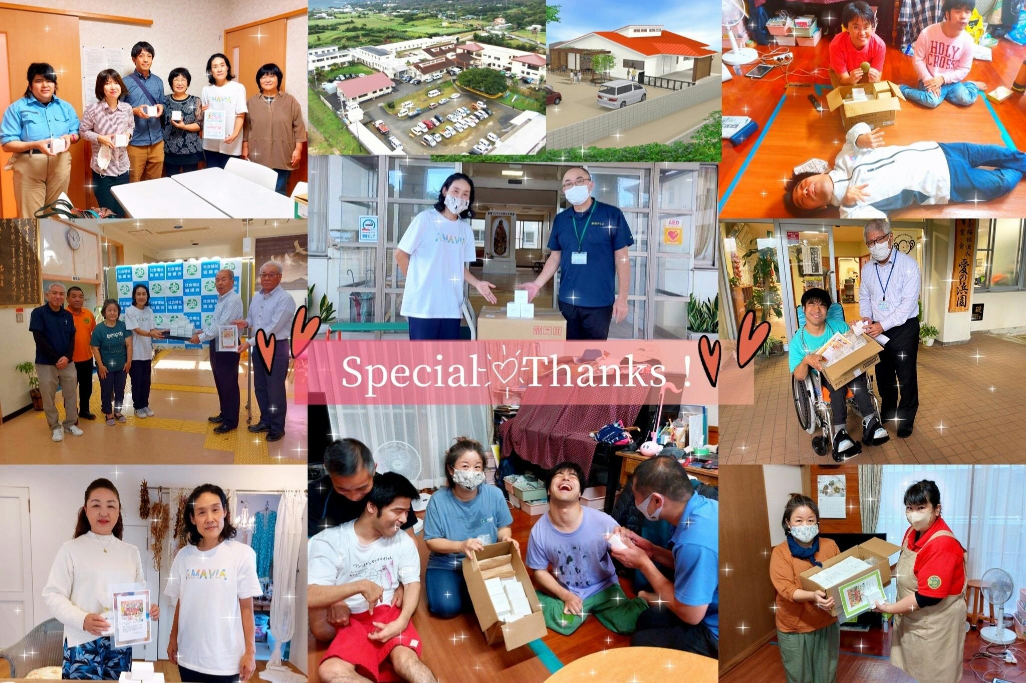 セントジョセフ会(希望の星学園、B型就労支援施設星窪きらり、生活介護施設オリーブの丘) 180個、ライフぴあ30個、わかば40個、奄美市社会福祉協議会40個、みのりある10個、稲医院 30個、B型就労支援施設まんまる40個、ハッピーハウス30個、フラカオスタジオ30個