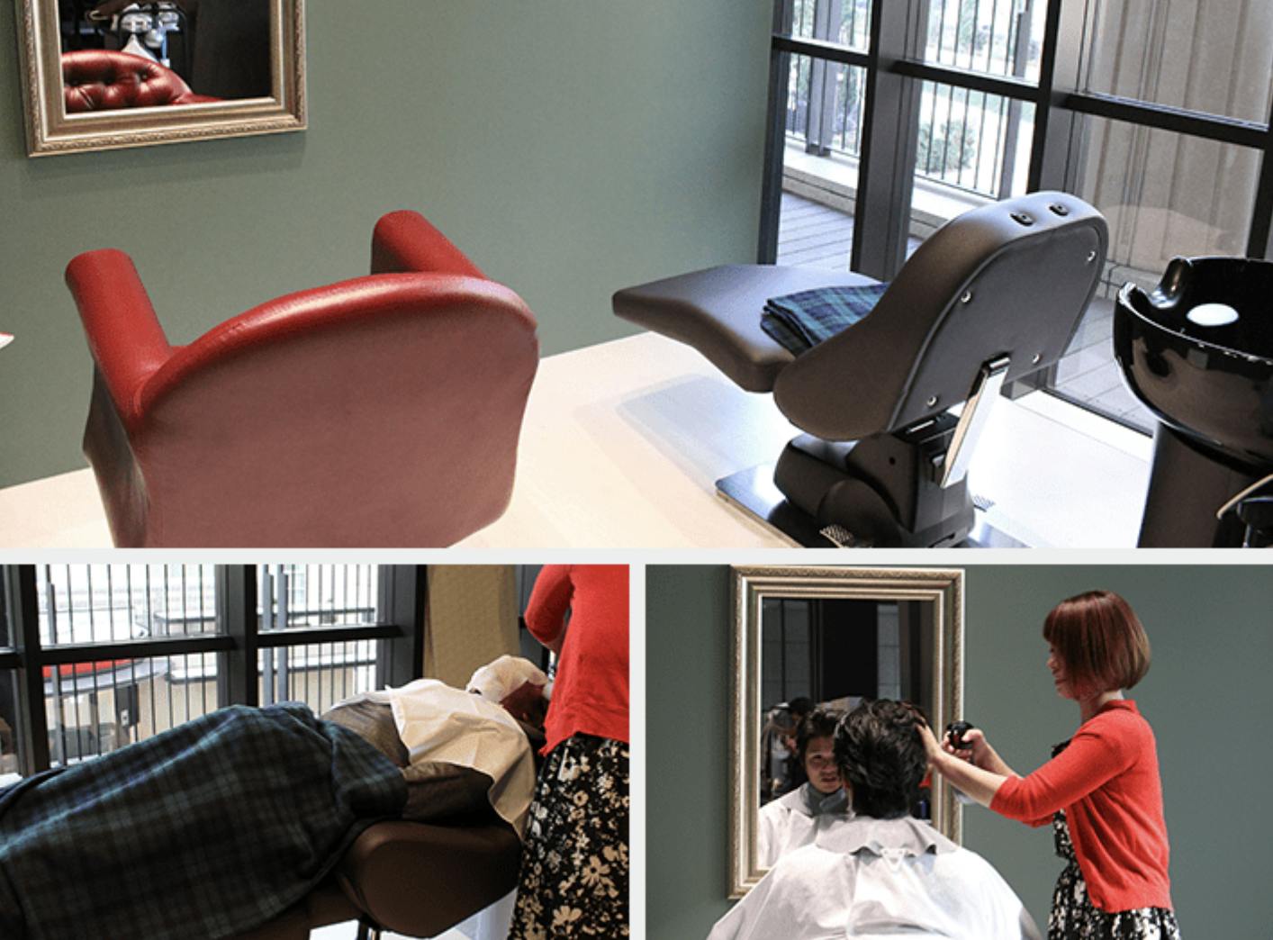 オーダースーツ店内に美容院が併設した新しいコンセプトのプライベートサロン【オーダースーツ】×【美容室】のコラボ店舗を運営。当店のお客様は美容室が無料で利用できます。