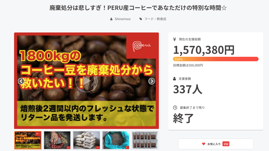 昨年、「ペルー産コーヒー豆を廃棄処分から救う」プロジェクトに挑戦させていただきました。