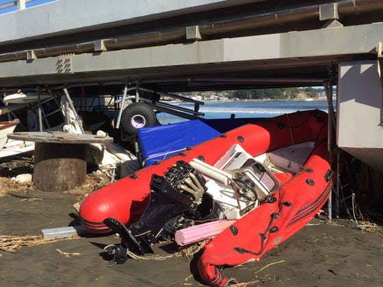 10月23日に江ノ島を直撃した台風21号によって引き起こされた13メートルを超える津波級の高潮によって、活動の中心地であった砂浜の艇庫(倉庫)が壊滅的な被害を受け、中に保管していた皆で共有して大切に使っていたヨットやレスキューボート等の用具類が、高潮により大破してしまう等の甚大な被害を受けてしまいました。