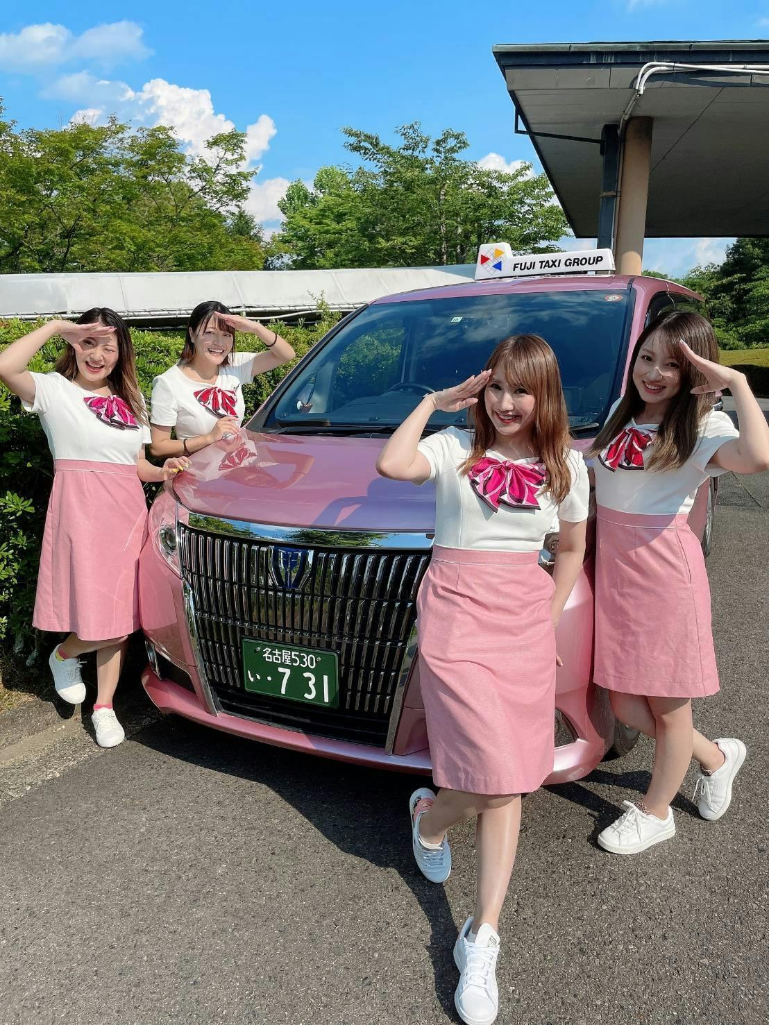現在、愛知県内をピンクのタクシーで