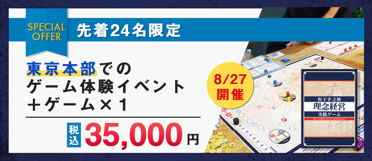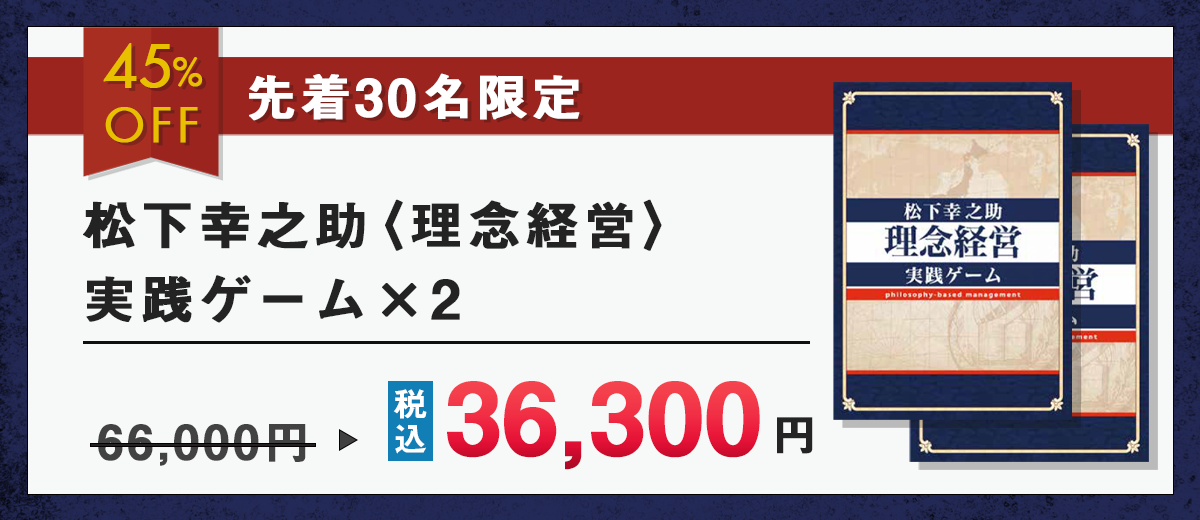松下幸之助が大切にしてきた「経営哲学」そして「人の活かし方」を体験し、人を成長させ、強いチームをつくることを目的とした、これまでにない新しいボードゲームです。お金で買うことのできない体験は、あなたやチームに大きな影響を与えてくれるはずです。