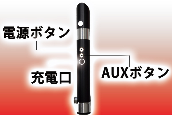本体の電源OFF状態で「AUXボタン」を1クリックすると設定したブレード音が鳴ります。