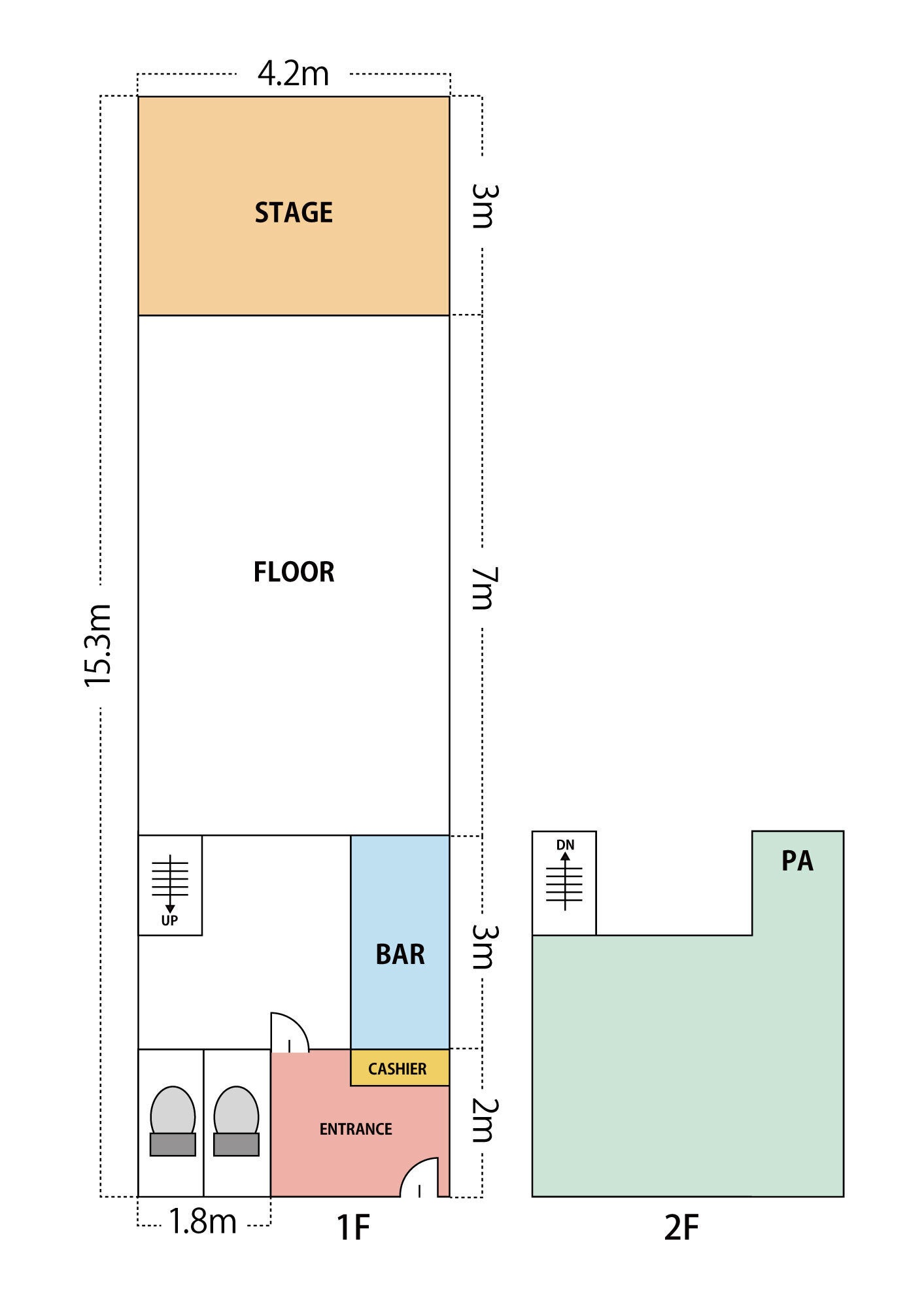ライブハウスのキャパシティーは100人〜120人の設計となっております。