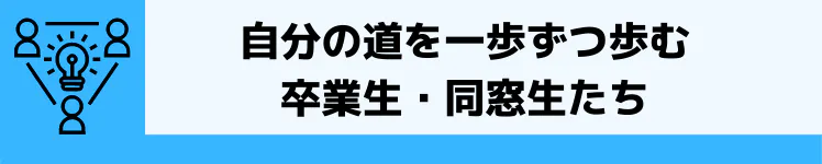 このように自分のしたいことを見つけて、社会でその道に突き進んでいる生徒たちがいます。