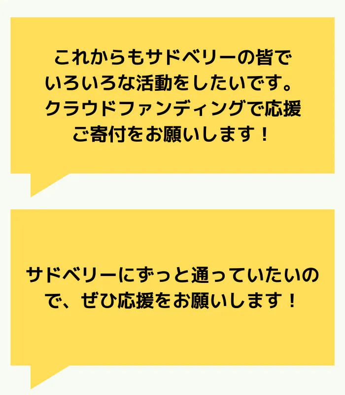 次年度以降も生徒たちがサドベリースクールで学び続けられるよう 、また同窓生がいつでも帰ってこられる学校の継続のため、ご支援どうぞよろしくお願いいたします!