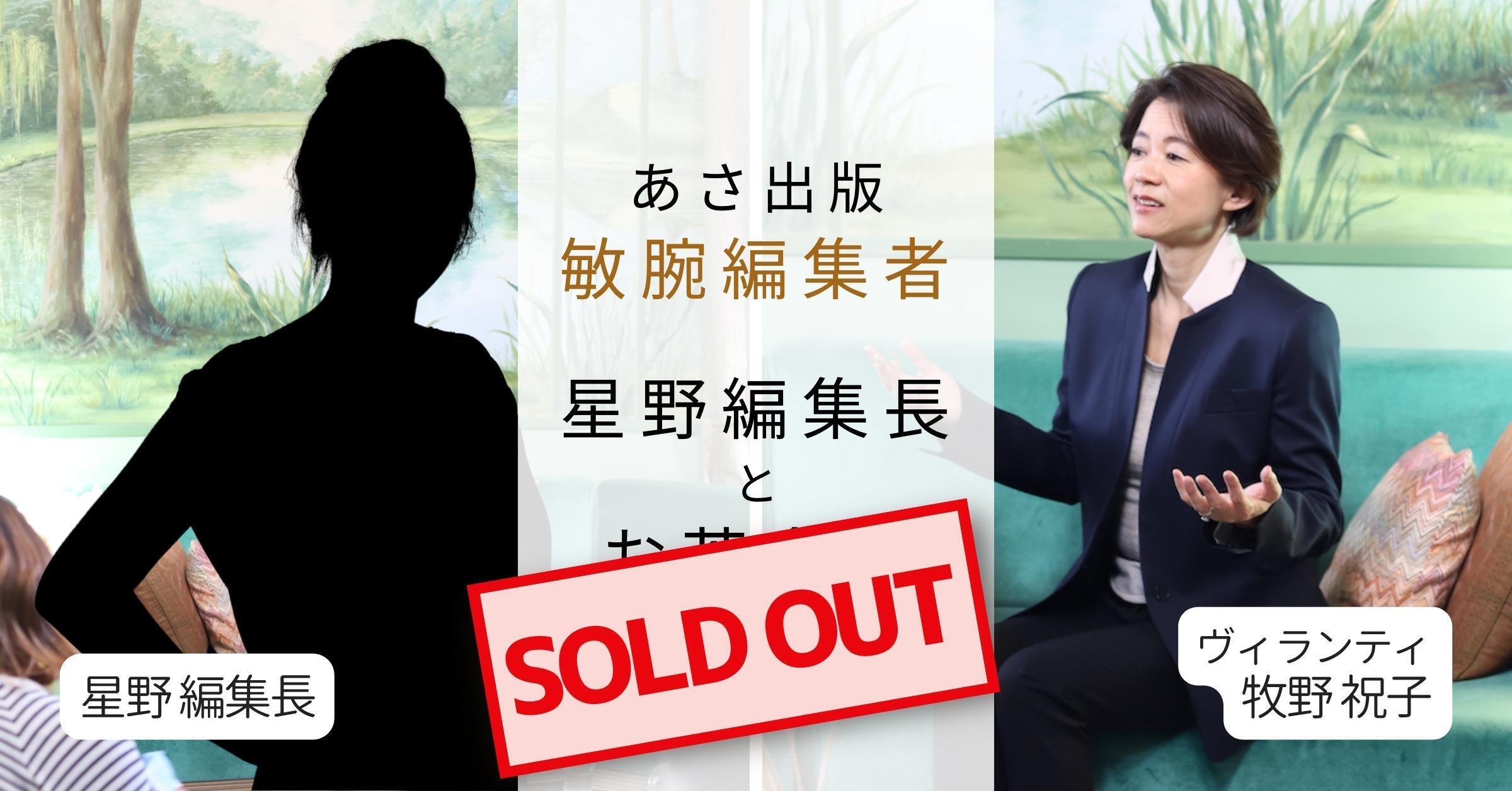 あさ出版の編集長、星野さんと少人数で、出版についてお話ししましょう。ご希望の方は、企画書をお持ちください。企画書を送ってもなかなか読んでいただけないのが出版業界の現状です。このお茶会をきっかけにあなたの出版へと繋がれば、私も嬉しいです。