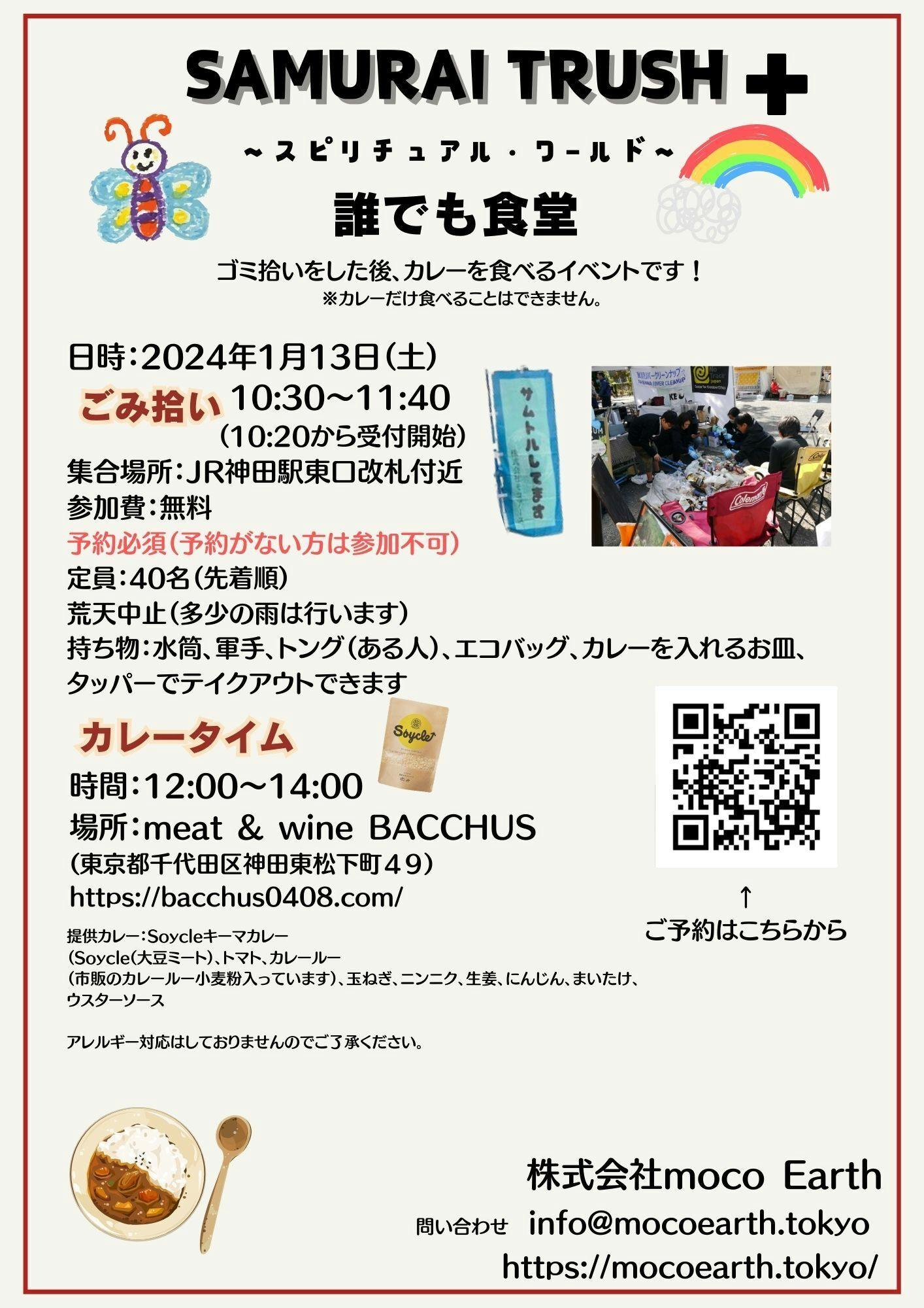 2023/12/08 14:16お久しぶりです。株式会社moco Earthです。「アプリ×ゴミ拾い×アートの遊びで海を守ろう!!!」にご支援いただき誠にありがとうございます。皆様のおかげでSAMURAI TRUSH〜スピリチュアル・ワールド〜を成功することができました。そして、今回「SAMURAI TRUSH+誰でも食堂」のクラウドファンディングを行っております。ご支援・ご協力よろしくお願いします。また、周りの方に告知よろしくお願いします。イベント内容としましては、東京都神田にある「meat & wine BACCHUS」というお店をお借りして、レストラン周辺をゴミ拾いします。その後、大豆ミート「soycle」を使用したキーマカレーを提供いたします。(オーナーシェフが作ってくださいます!)料金は無料です。ぜひ、ご参加ください。「SAMURAI TRUSH+誰でも食堂クラウドファンディング」https://camp-fire.jp/projects/view/722039?utm_campaign=cp_po_share_c_msg_mypage_projects_open「誰でも食堂ご予約フォーム」https://forms.gle/T9CqAYcCqy5TEsFD9 もっと見る