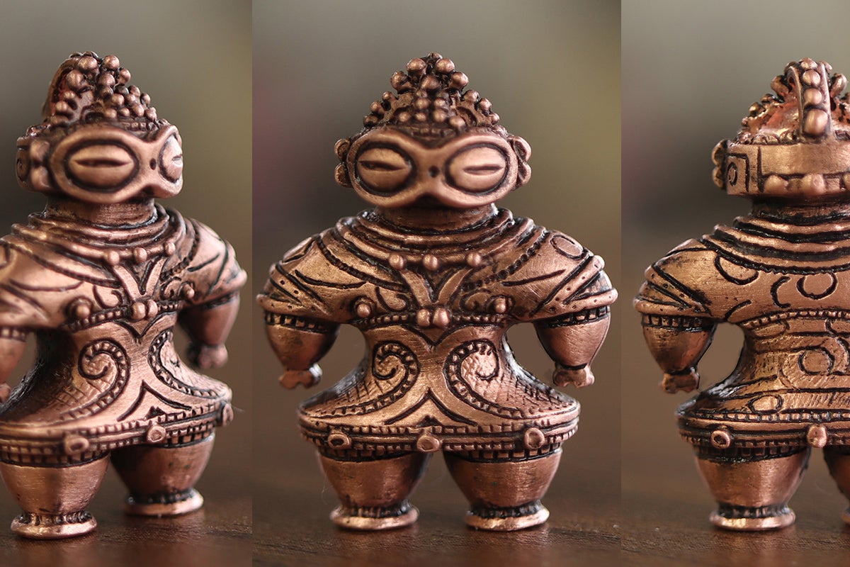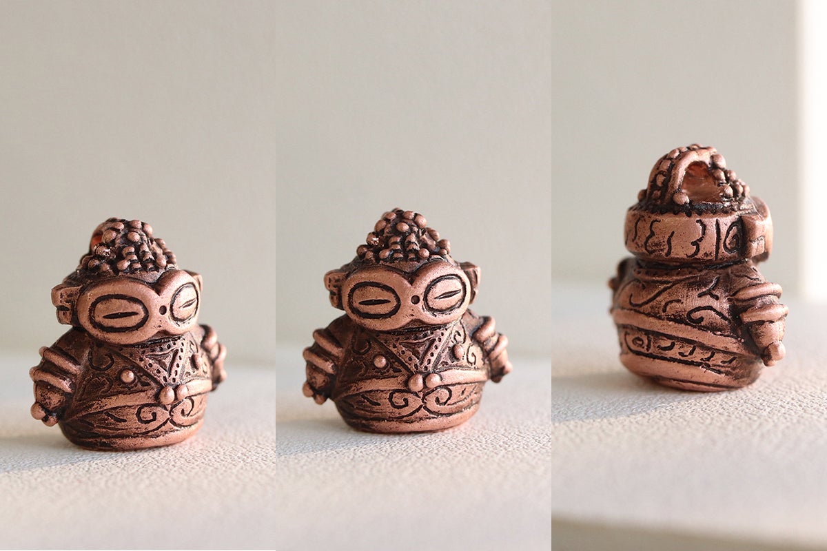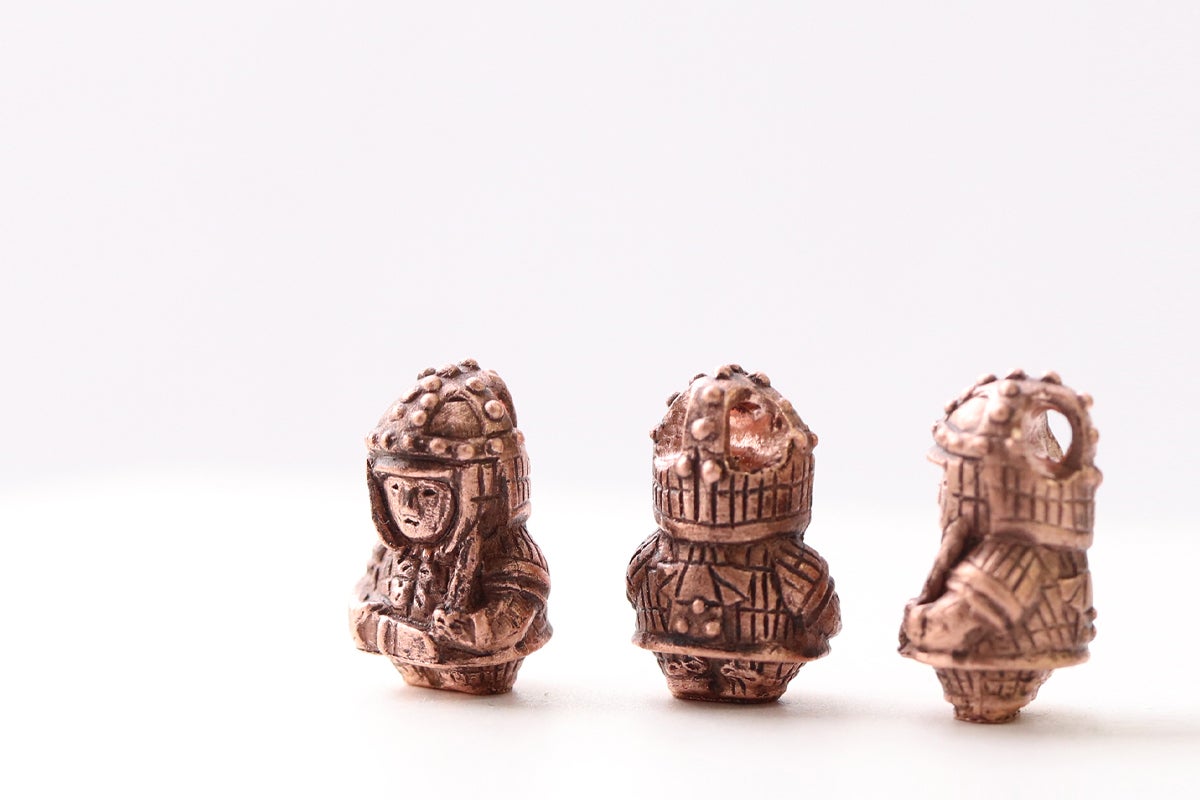 作品は土器・土偶の質感を再現するために純銅の鋳肌を活かした独特の仕上げをしています。やわらかい風合いが出るように、磨きすぎず絶妙な塩梅でひとつひとつ丁寧に仕上げていきます。愛情を込めて作った作品に命が吹き込まれ、作り手として幸せを感じる瞬間です。