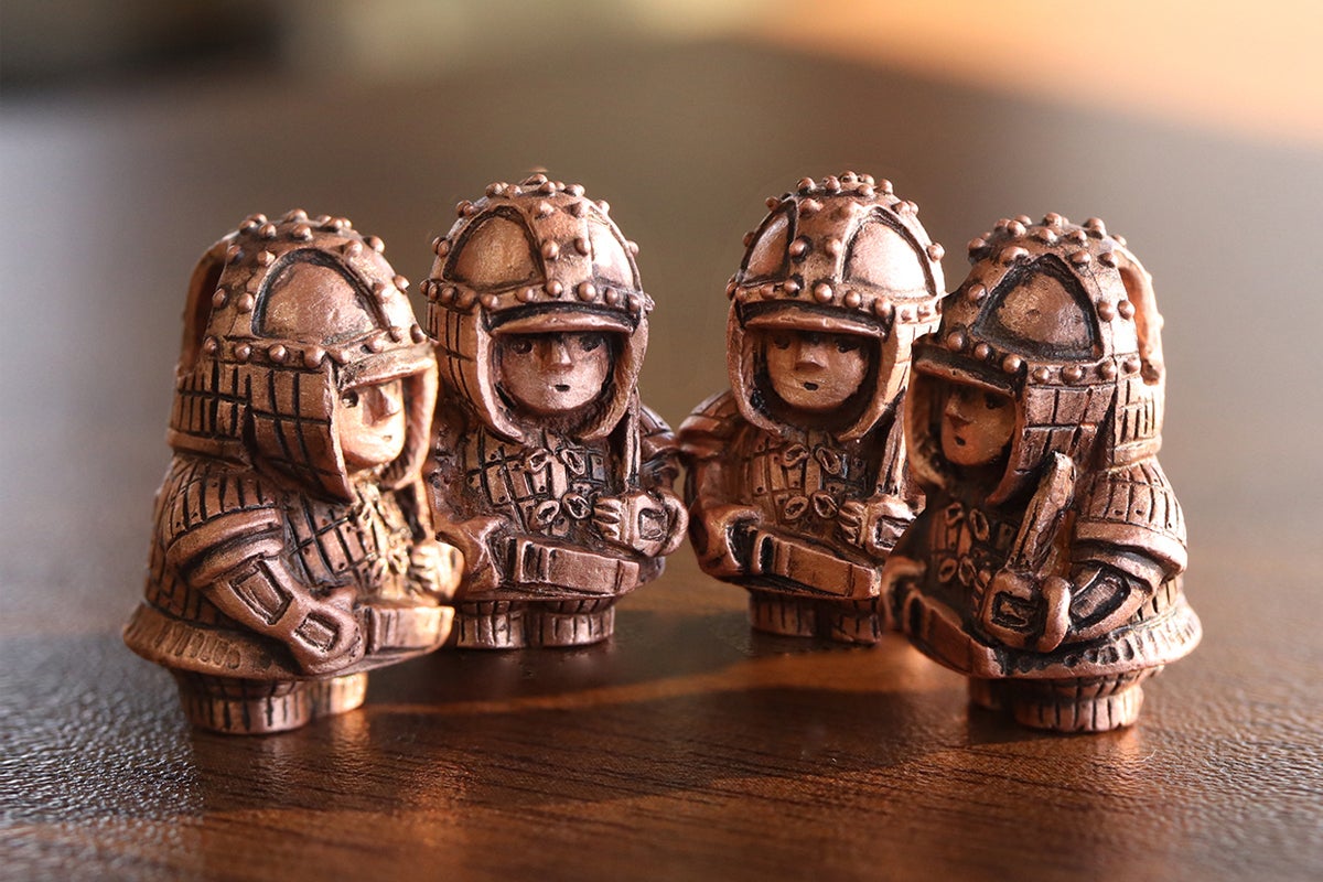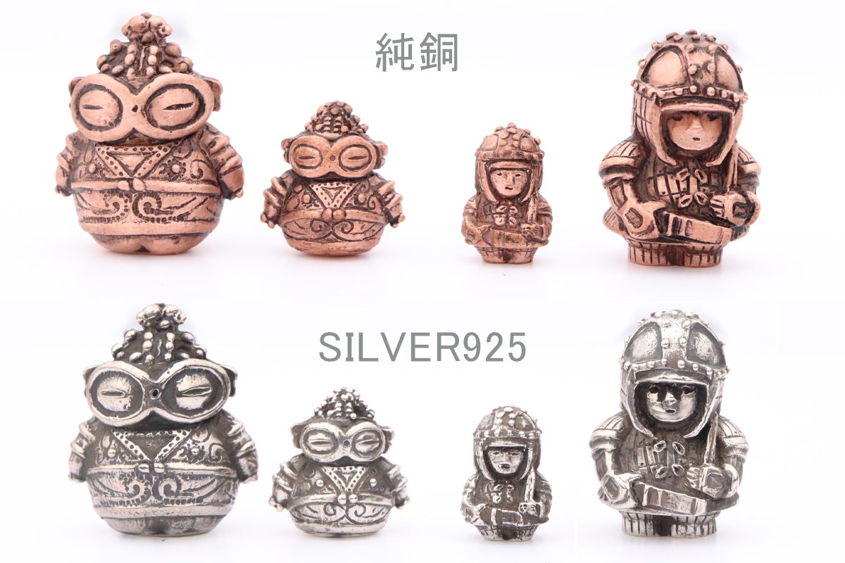 純銅とシルバーの「ほっこり挂甲武人」たち。小さい方はほっこり豆挂甲武人さん