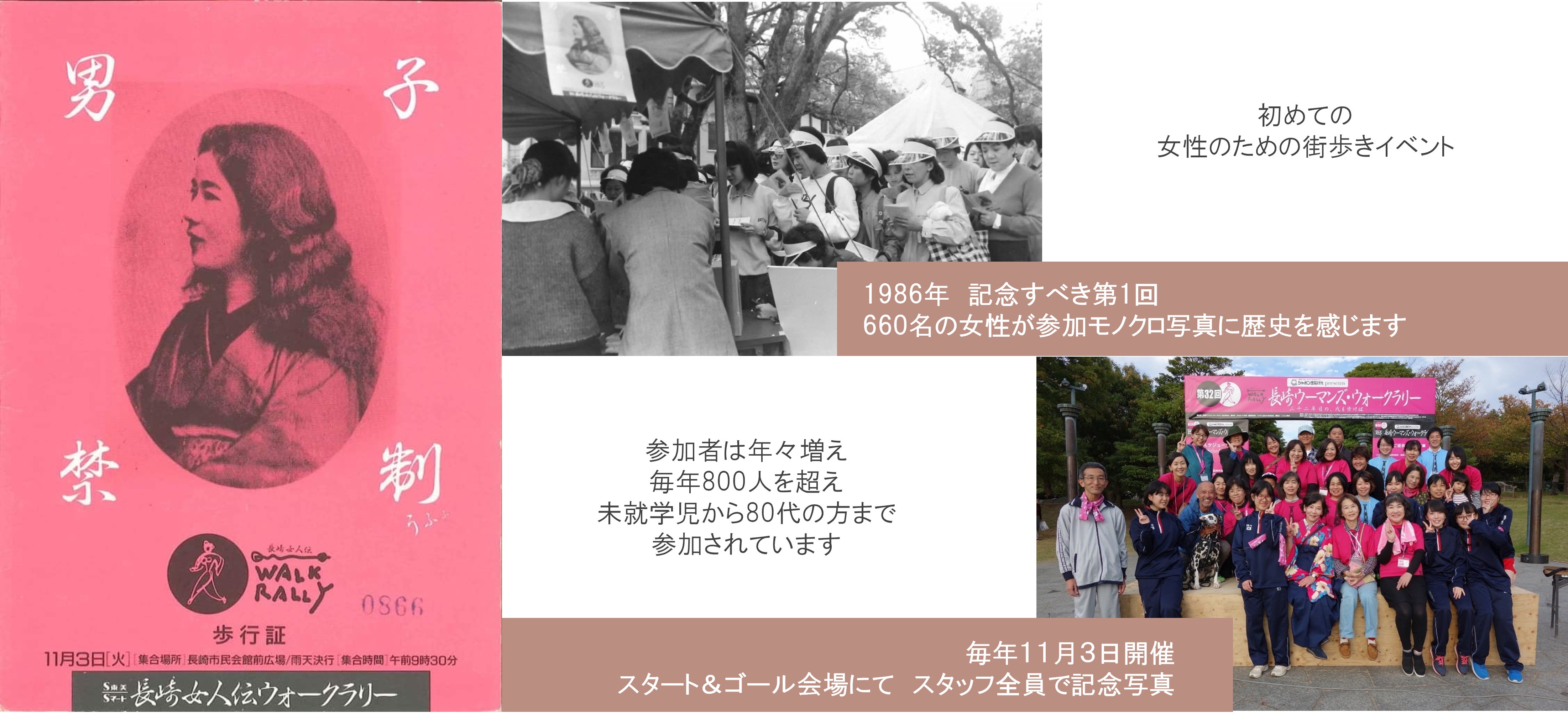 ●35年前に始まった女性が主役のまち歩き「長崎ウーマンズ・ウォークラリー」。長崎の女性たちの秋のイベントとして親しまれ、定着しました。秋になるとピンクのポスターが町の中にあふれます!