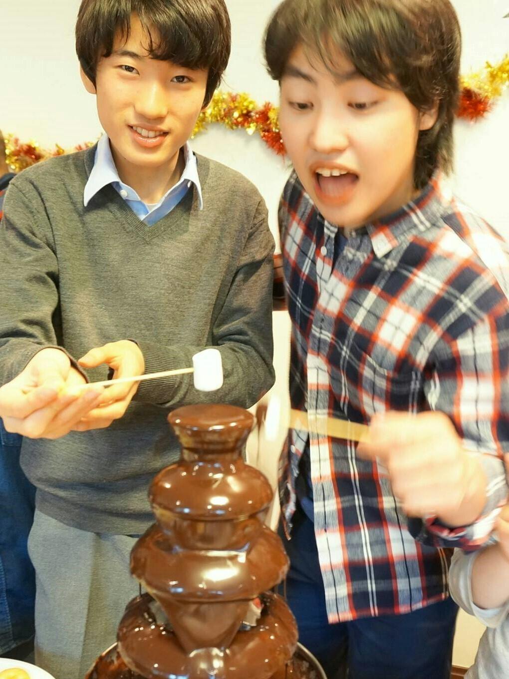 感謝パーティーを開催。この年は皆でチョコレートファウンテンを楽しみました!