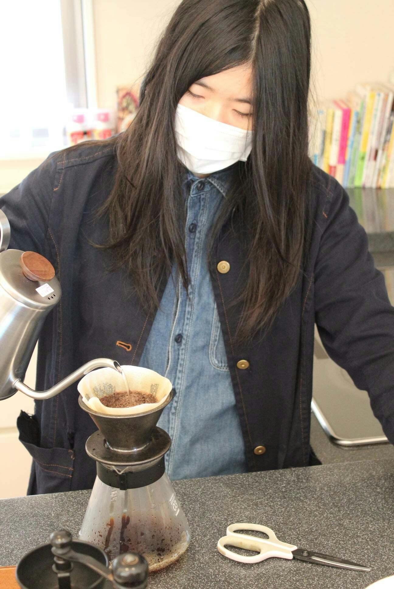 コーヒー好きな生徒が自分で美味しい淹れ方を研究。豆も焙煎していました。好きなことは人は自然と研究者になります。
