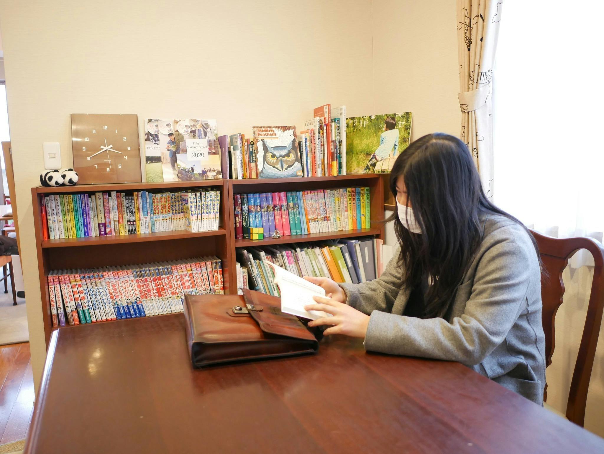 本好きな生徒が1人で読書。みんなとわいわい過ごすことも、1人でじっくり過ごすこともできるのがTSS流。
