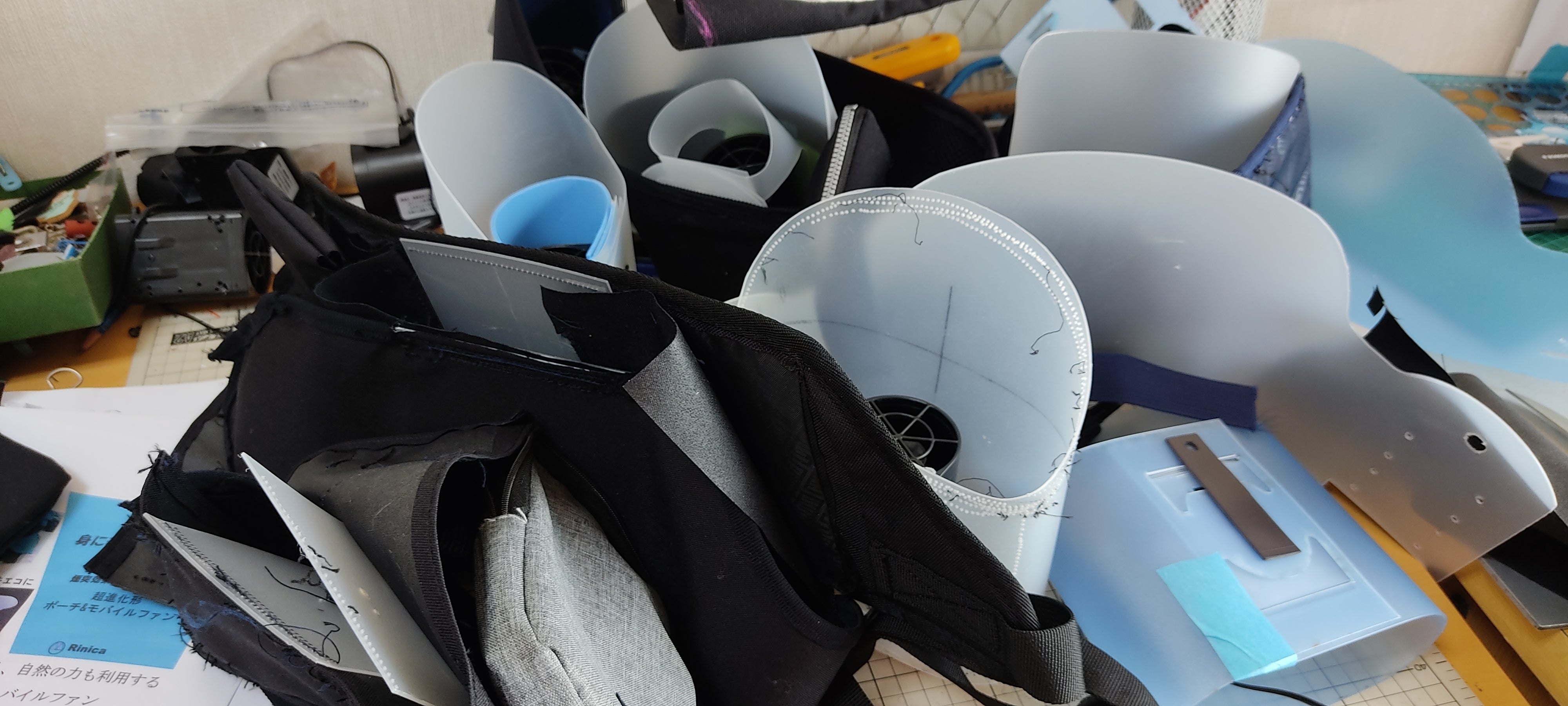 Rinicaでは、不完全なクリップを全廃し、シャツの上からポーチ風のベルトをしっかり締めて、全体を押さえます。その結果、飛んでも跳ねても風が止まらなくなりました。