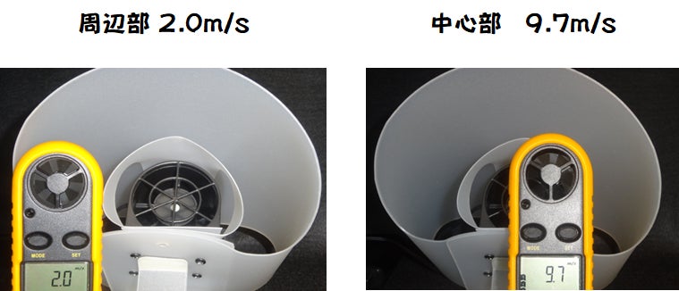 ファンから離れた外側からも、風が吹き出しているのがお分かりいただけると思います。