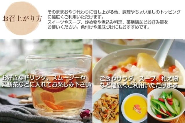 そして、果実酒や漬けたりしてお楽しみいただくこともおすすめです。発酵させることで、クコの実の栄養に更に発酵のパワーがプラスされます。大粒クコの実のエキスがしみ込んだ液は、心身を健やかに導くお手伝いをしてくれることでしょう。