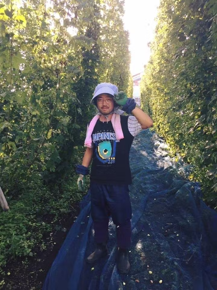青森・田子町のホップ農家にて。青森のホップ農家が激減してると知り、ホップ農家になろうと考えていたこともありました。