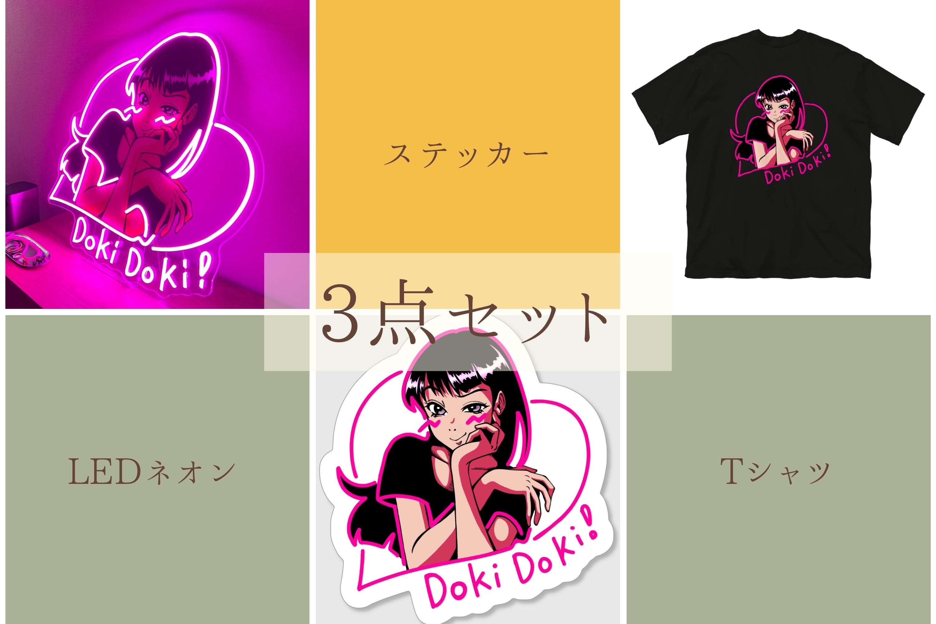・ステッカー、Tシャツ、アート×ネオン3点セット