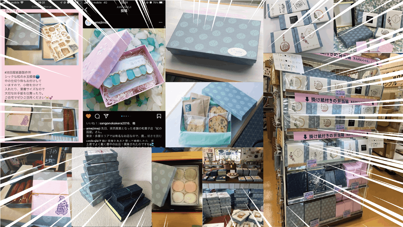 今回の一件以降、お菓子の箱以外の使い方をしてくださり、私たちも感動しております。食べ終わった箱を捨てずに使っていただけるほど池田屋にとって嬉しいことはありません。こんなことに使ってるという報告をいただけて本当に嬉しかったです。