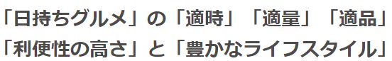「ハイクオリティ」且つ「利便性の高さ」を兼備する「日持ちグルメ」の提案でさりげなく「食品ロス削減」に寄与し、「豊かなライフスタイル」を御提案する