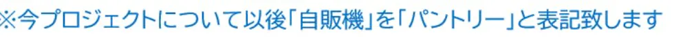 冷凍食材自販機(「PANTRY」1台で約200万円)設置に掛かる諸費用に充てさせていただきます