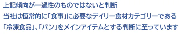 現在と未来の消費トレンドを予測したうえで、まさしく、「今」が「日持ちグルメ(冷凍パン等)」の自販機(パントリー)事業を行うタイミングであると考えています。