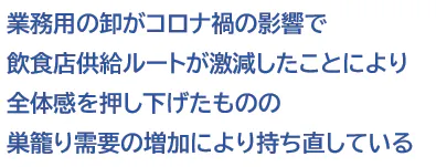「巣ごもり消費」により外食での消費活動が停滞し、「自宅時間の充実コンテンツ」に消費が向かい「食」の分野でも外食サービスで提供されるクオリティの食材が注目されました。
