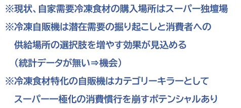 今後については…第2期プロジェクト以降で将来的に冷凍食材の自販機市場が拡大見込みがあれば足元商圏から近隣エリア、地方、全国、過疎地などへの展開も視野に検討して参ります。